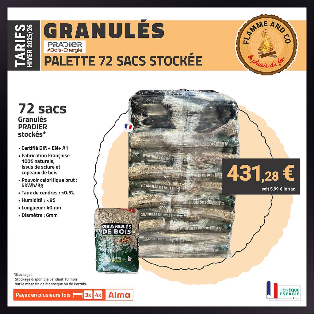 72 sacs granulés DIN+ A1 Pradier livrés